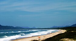 A região se desenvolveu com a chegada de descendentes de imigrantes açorianos, e hoje a praia é um destino turístico popular, com ampla infraestrutura e acesso a dunas para sandboard.